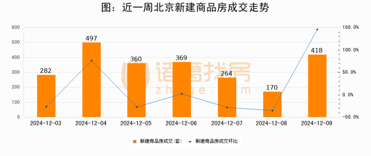 【北京成交日报】12月09日新房成交418套、二手房940套;涨价房源98套