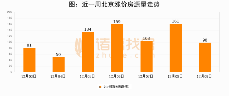 根据诸葛找房数据显示,北京24小时涨价房源量为98套,较12月08日减少63套,环比下降39.1%。与此同时,涨价房源占比小幅回落,对于购房者来说是一个入市窗口期,购房者可抓住时机入市。