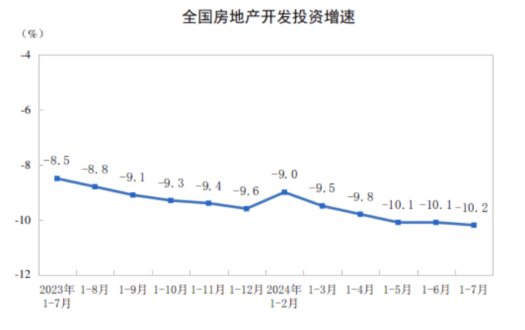 诸葛数据研究中心首席分析师王小嫱指出,1—7月份,全国房地产开发投资同比下降10.2%,降幅较上月扩大0.1个百分点。至此,开发投资连续26个月负增长,房企投资信心仍在底部徘徊。