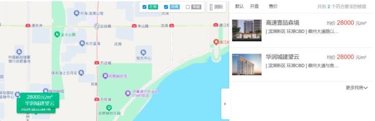 安居客数据显示,截至9月22日,滨湖新区二手房均价为1.61万元/平方米。宝能城所在的滨湖新区环湖CBD板块目前共有两个新盘在售,销售均价为2.8万元/平方米。