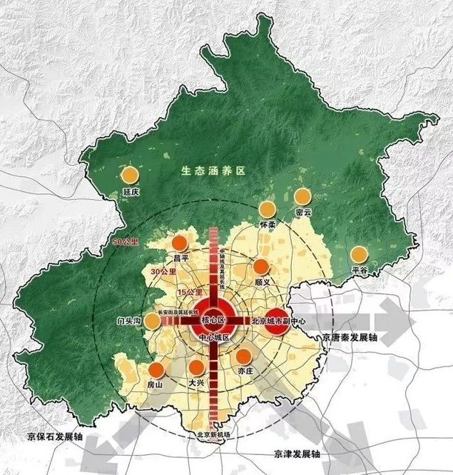 《北京城市总体规划(2016年—2035年)》提出,构建“一核一主一副、两轴多点一区”的城市空间结构,其中“一副”即北京城市副中心—通州区;“多点”即平原新城区域,包括顺义、大兴、亦庄、昌平、房山新城,是承接中心城区适宜功能和人口疏解的重点地区。显然,相对于北京城六区,通州和大兴的发展潜力巨大,两区的楼市价格也仅次于前者,先进生态涵养“一区”的七个区域。