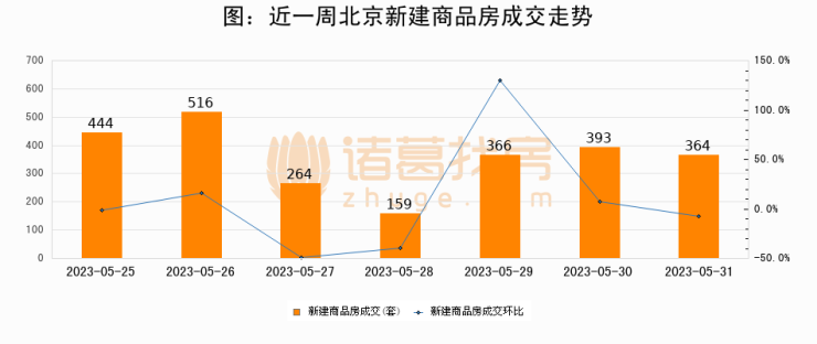 【北京成交日报】05月31日新房成交364套、二手房974套;涨价房源150套
