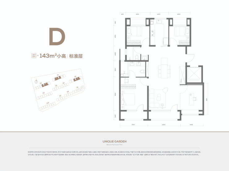 143平四居两卫,经典的四叶草布局,客厅面宽4.3米,客餐厨一体化,整体格局不错;主卧配有独立的大衣帽间,主卫双台盆设计,更显改善特质,日常起居也更加便捷!