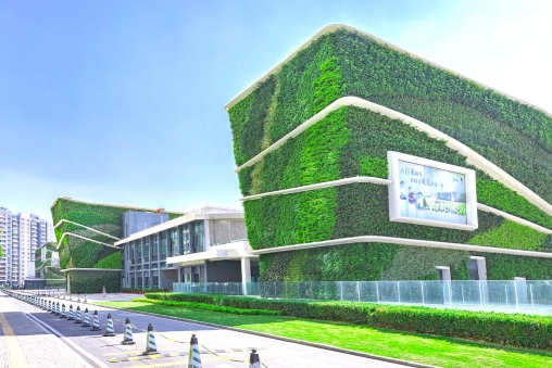 广州自由人花园立体绿化工程位于广州市花都区,包括4栋相对独立商业建筑,立体绿化总面积达15000平方米,属世界上较大的单体类垂直绿化项目。深圳翠箓科技、新加坡建恒集团分别受中新双方委派,以此项目为载体,进行绿色建筑及立体绿化技术的研发实践工作。2018年建成后,项目即被授予『中国•新加坡湿热气候区绿色建筑技术合作示范项目』、『中国•新加坡立体绿化合作示范项目』多项荣誉。