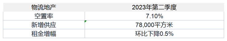 物流市场需求保持稳健,全市空置水平受新增供应影响小幅上升。多个超过五千平方米以上的大体量新租成交在二季度录得,新租需求以第三方物流、电子科技和生物医药为主。其中,顺义空港子市场和通州马驹桥子市场需求增量明显优于其他区域,呈现稳步增长态势。在供应方面,二季度北京物流市场在远郊区迎来一个新增项目,总建筑面积为78,000平方米。新项目因自身交通可达性较差且地处偏远,面临较大的去化压力,市场整体空置率受此影响在二季度小幅上升0.8个百分点至7.1%。