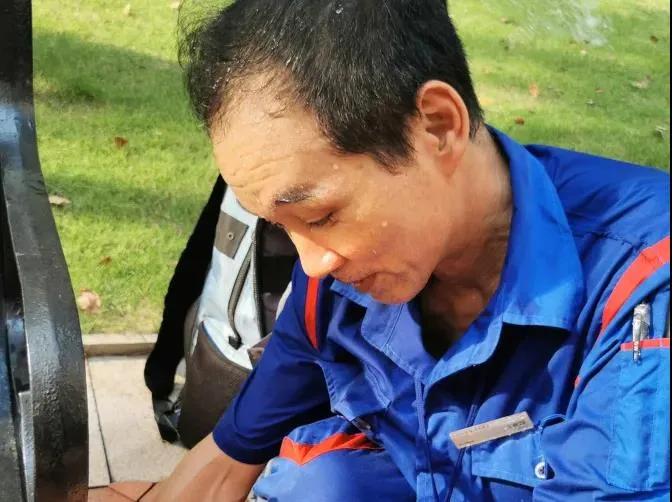 持续的高温对全天无休的设备也是一种考验,一旦出现故障,龙光服务工程维修员立刻赶到。即使曝晒,他们也要维持设施设备的正常运转。被汗水浸透的工作服,就是他们爱岗敬业的勋章。