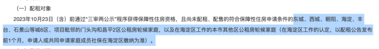 也就是说,此次配租对象除了海淀区轮候家庭,其他8个区的轮候家庭也能参与登记。