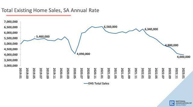 当地时间21日,美国房地产经纪人协会(NAR)公布最新数据显示,1月成屋销售总数年化录得400万户,创2010年10月以来的新低。上月,成屋销售总数同比降幅为36.9%,环比下降0.7%,为连续12个月出现环比下滑,创1999年有记录以来的最长跌势,连跌周期甚至超过2008年次贷危机时期。