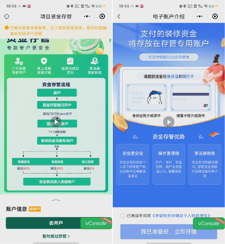 贝壳整装给出的解决方案是:引入银行作为独立第三方,建立“节点验收、双向确认、银行拨付”的闭环机制。消费者的装修款项直接存入中信银行专用存管账户,不进入企业经营体系,产生利息归消费者所有。工程被拆分为水电验收、基装验收、竣工验收等关键节点,按60%、35%、5%的比例分批次解冻,每个节点经业主确认满意后,银行才将对应款项划转至装修企业。
