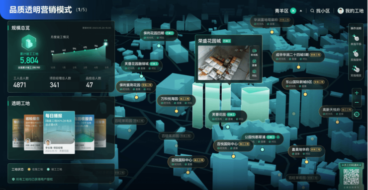 资金存管不仅是支付方式的改变,更与数字化工具深度绑定。消费者通过小程序即可完成开户、选择支付方式,并实时查看资金冻结与解冻进度、节点验收记录等全流程信息。在施工环节,贝壳自主研发的“贝刻云视”智慧工地系统,通过AI摄像头实时监控工地进度与安全规范,业主可在手机端随时查看施工现场直播、材料清单及验收报告。此外,在被窝及圣都的各大展厅内,均设有工地全景直播交互式大屏,直观展示工地的施工进度、现场情况以及整改问题的最新动态,将“透明装修”从理念落地为可感知的现实。