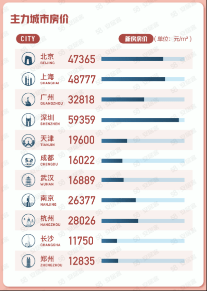 二手房方面,北京、深圳、上海二手房挂牌均价分别为58657元/㎡、57631元/㎡和54724元/㎡。