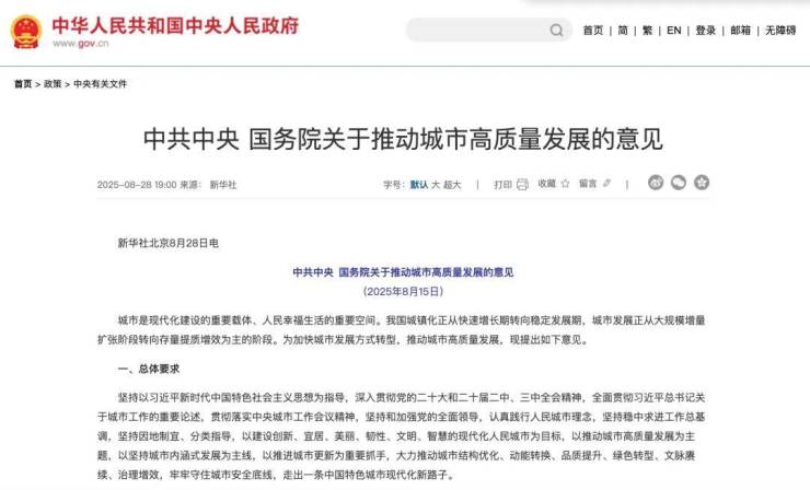 朋友们,昨天晚上七点,顶层发布了关于推进城市高质量发展的意见。