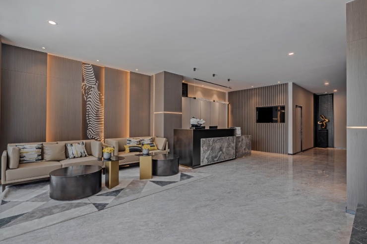 作为FUNLIVE方隅在北京的排名前列项目,从前期规划设计到后期工程施工一直精雕细琢,力求提供给客户有品质感、有温度的公寓社区生活。“现代轻奢”的设计风格,从进入公寓大厅开始就能感受到。大厅通铺仿雅柏灰石砖加铺大张地毯,前厅设有接待服务台和等候区,光影搭配木饰面墙,加上古铜拉斯不锈钢装饰,突显现代时尚气息,都市加轻奢的感觉被自然释放出来。