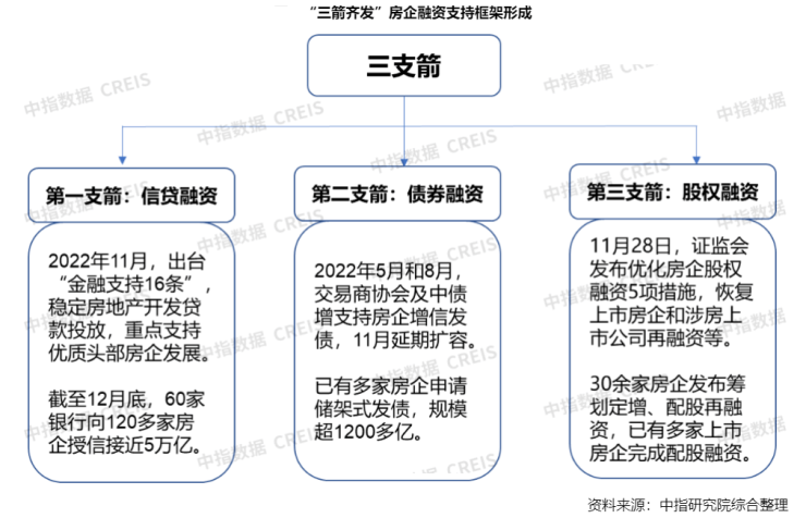 而11月份以来,多项房地产重磅政策利好陆续落地,尤其是“金融 16 条”出台后,房企融资支持节奏明显加快,政策“托底”信号明确。结合此前支持房企融资的“第二支箭”,政策整体呈现出落地快、范围广、规模大的特点。尤其是11月28日证监会发布“第三支箭”,在房地产股权融资方面进行了调整优化,此后已有超30家发起股权融资计划,其中既有规模房企、也有出险企业,包括民企和国央企。