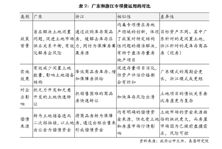 广东省自然资源厅和省财政厅作为土地储备领域专项债券申报发行的双牵头单位,专项债是今年一季度提出的一项系统性工作,旨在解决土地闲置问题,促进土地市场关系平衡。而专项债收购库存商品房,目前则是在浙江最先探索,将通过收购库存商品房缓解去库存压力的同时为保障性住房筹集房源。严跃进表示“选择这两个省份,说明改革的导向很清晰,即优先在经济发达、债务偿还能力强的省份推进。”