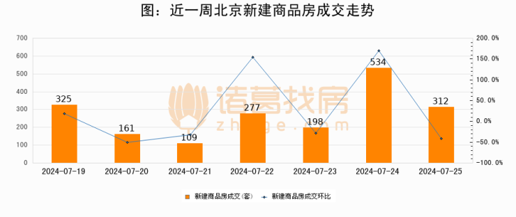 【北京成交日报】07月25日新房成交312套、二手房643套;涨价房源267套