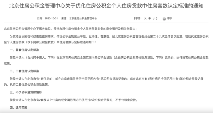 今天,北京住房公积金管理中心发布《关于优化住房公积金个人住房贷款中住房套数认定标准的通知》。