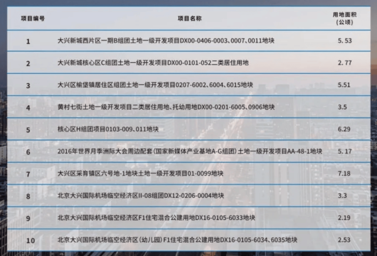 18.583朱房四街棚户区改造项目资金平衡地块住宅2.419.764四季青地区城中村改造项目(西冉、田村)住宅2215.215功德寺棚改项目资金平衡地块住宅216.256四季青地区城中改道项目(西山片区)住宅、产业1.718.267半壁店地区城中村改造项目住宅1.148