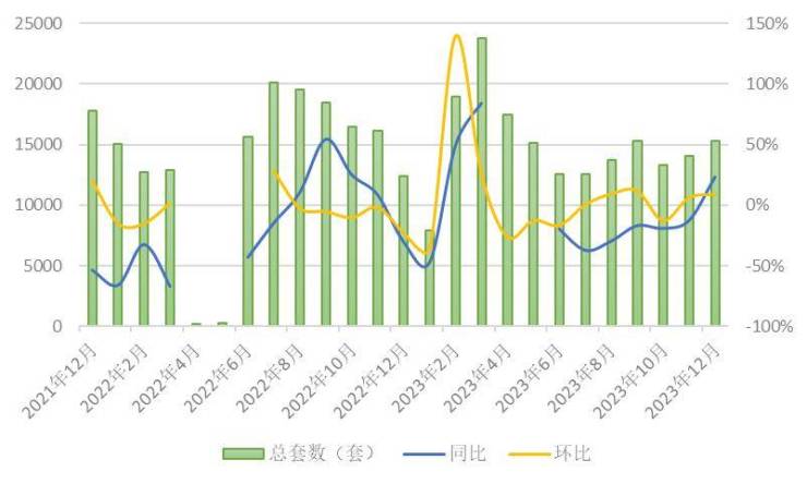 从新房市场来说,在楼市政策叠加年末供应量增加背景下,2023年12月,上海新房成交套数环比增长27%,全年共计成交约8万套新建商品房;从成交面积而言,当月上海新建商品住宅成交78.3万平方米,成为2023年下半年成交面积最高的一个月。
