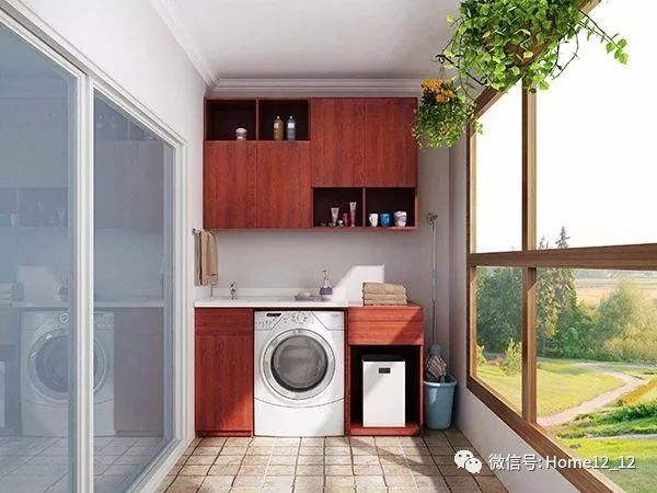 洗衣机入柜,不占地方有整洁,洗好衣服就可以晾晒。