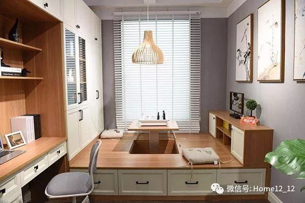 定制带升降桌的榻榻米,书房可以变成临时会客室,对小户型来说,榻榻米可助其实现一房多用。