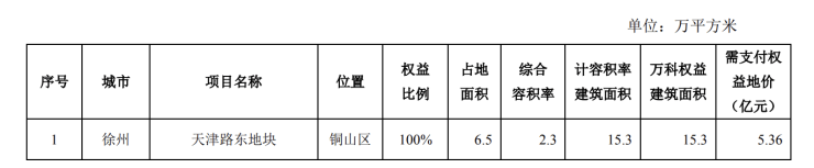 投资拿地方面,6月,万科新增开发项目1个,该项目位于徐州,权益比例100%,占地面积6.5万平方米,需支付权益地价5.36亿元。6月万科无新增物流地产项目。