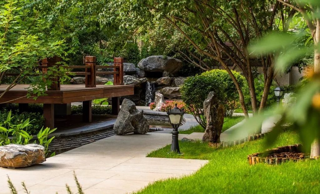 在景观设计中把中式的传统底蕴和文人精神内涵融入现代的生活场景中,以全新的居住理念,开启寻迹,探索古代人文情怀与对美好生活的向往之旅,使居住者隐于山水,而逸于花巷。从踏入园区的那一刻起,仿佛置身山水园林之中。
