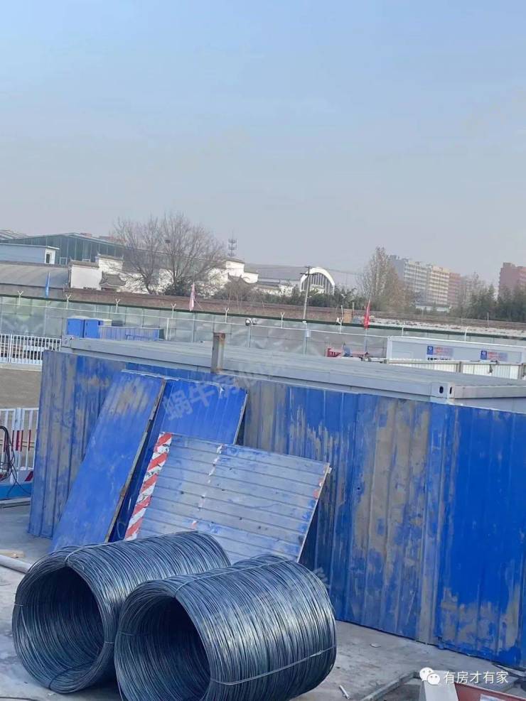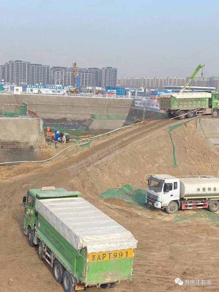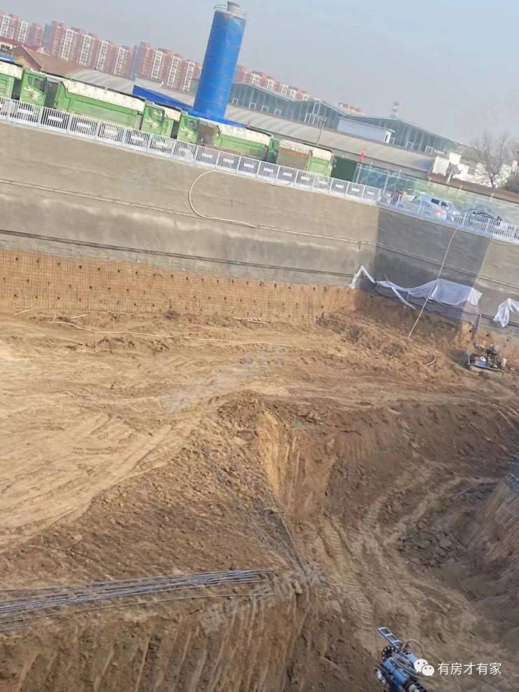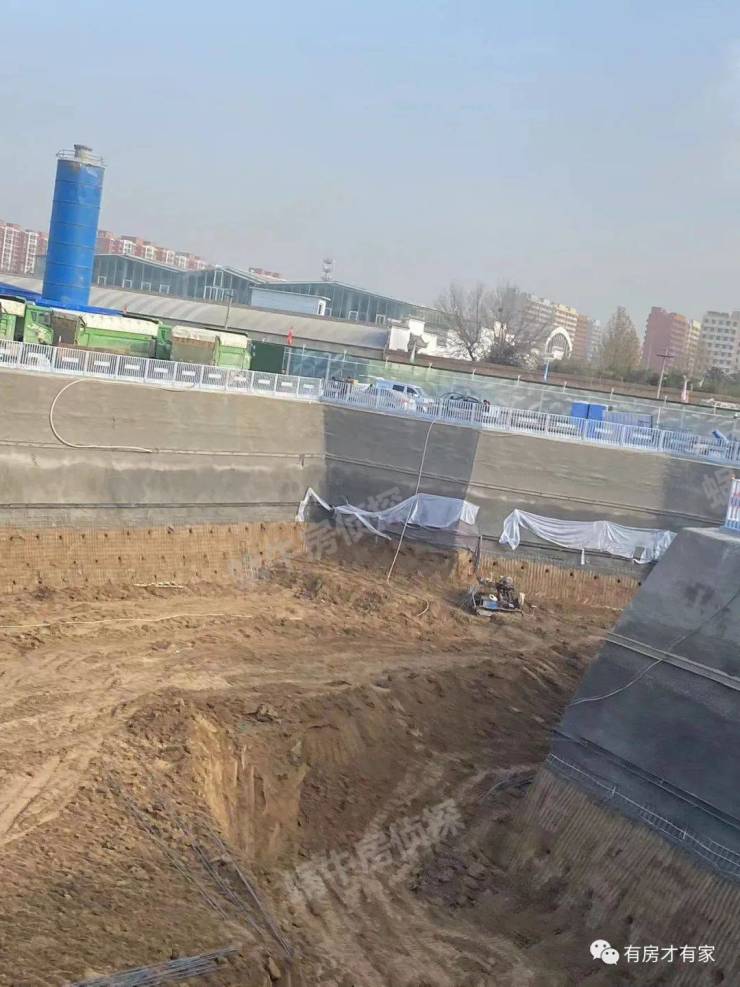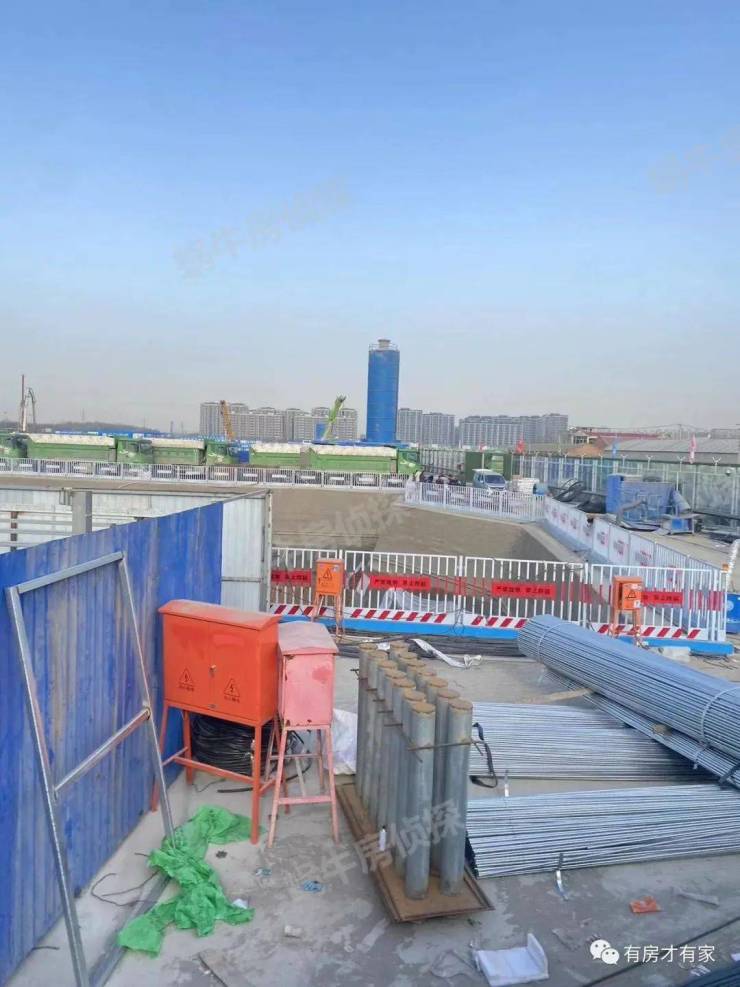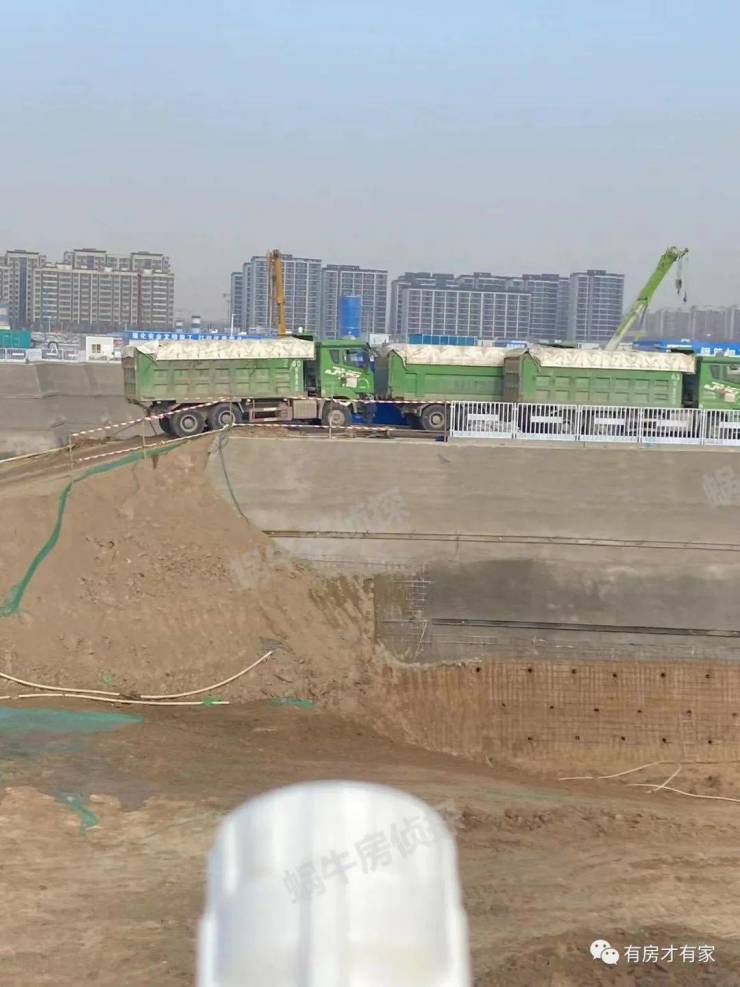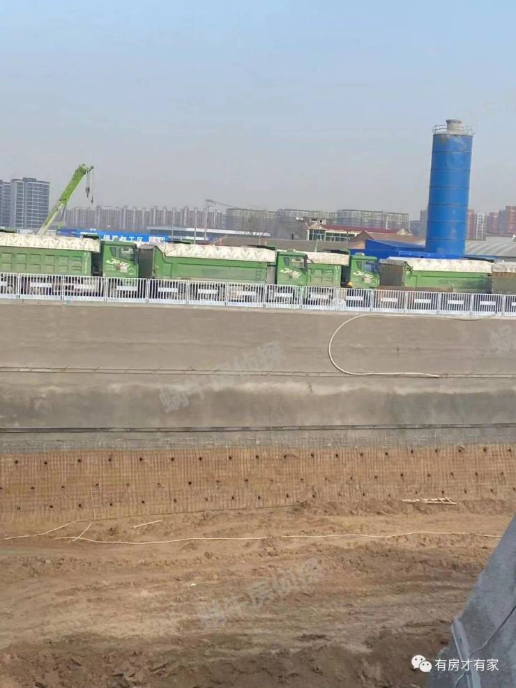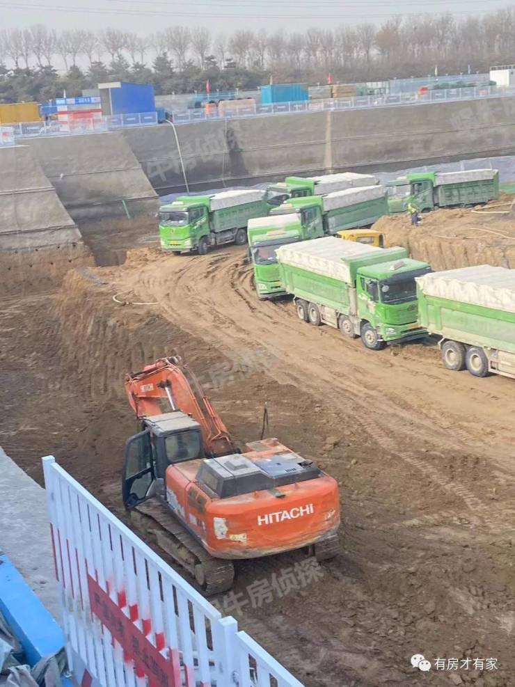 地块多角度实拍,可以看到内部有很多车辆在清理土方,砂浆罐已经进场了,现场也码放了些施工材料。