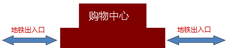 2、将主力店设置于购物中心的两端,将一般商户设置于购物中心的中部