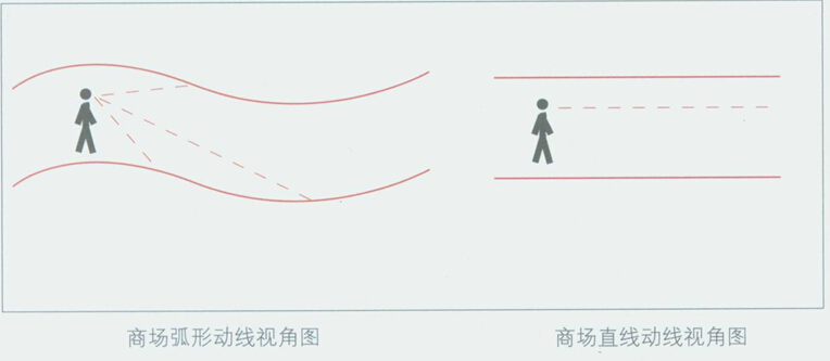透过圆弧形动线,能让顾客视野的延伸性更强,可视性更强,单店的能见率更高,便于顾客到达店面。弧形动线被很多香港购物中心广泛采用,如又一城、太古广场等。