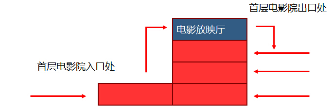 7、将电影城的入口设置于首层,但是出口却设置于高层,引导人流往上走。