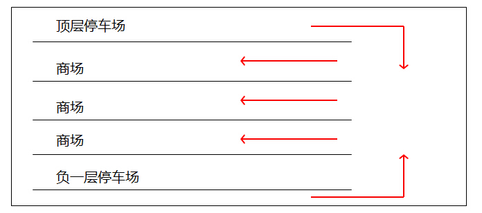 3、不把停车场只放在负一层,而是将停车场进行多楼层设置,进行人流引导