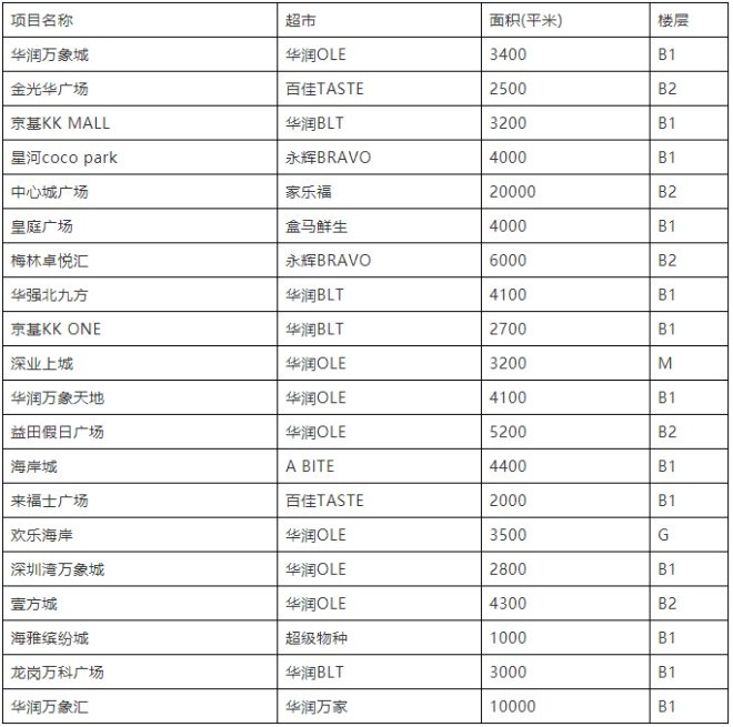 较近,笔者较近梳理了一下深圳20多家具有代表性的购物中心的超市情况: