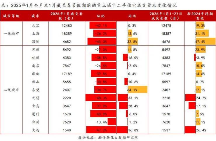 进入25年1月,春节假期前,单周实时成交也已来到1900套以下;