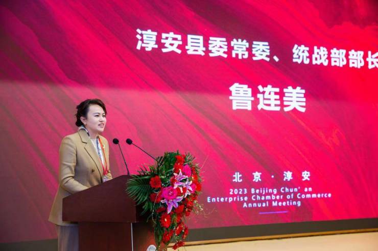 淳安县县委常委、统战部部长鲁连美进行了淳安县新乡贤联谊会北京工作站授牌。鲁连美高度肯定了北京淳安商会过去一年所取得的成绩,认为北京淳安商会、新乡贤北京工作站在广泛联络、积极对接资源、促进农品销售等方面都为家乡人民实实在在办了好事。鲁连美表示,北京淳安商会、北京工作站作为淳安人在京的后勤补给站、情感联络站、形象宣传站,发挥着至关重要的作用。也正是如此,她对商会提出了“三点希望”:希望大家做强自身,成为行业翘楚;希望大家积极推介家乡,成为家乡招商大使;希望北京市淳安商会、新乡贤联谊会北京工作站先行先试,成为示范榜样。