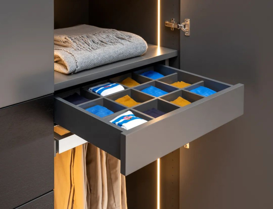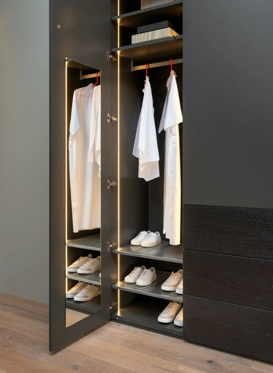 Rolf Benz STRETTO 不仅是 ROLF BENZ 生活和餐饮场景中的较佳伙伴,也是卧室的得力助手。除了床头柜,衣柜也有两种不同高度可选,还可根据抽屉布局进行多项定制。根据您的要求,衣柜内部可自由改造,包括搁板、抽屉、导轨、内部照明设备等。