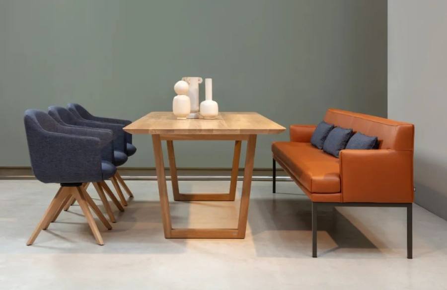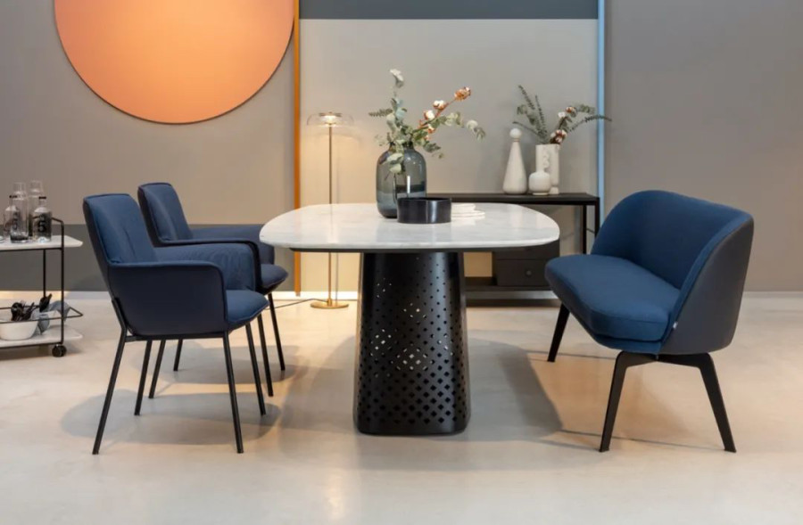 △在2020德国科隆展上,ROLF BENZ增添了现代就餐的一个新维度,推出了设计新颖的贝壳椅Rolf Benz 600和雕塑般的餐桌Rolf Benz 929。来自汉堡的设计二人组Hoffmann&Kahleyss为经典的贝壳椅Rolf Benz 600带来了新的变化,并提高了人体工程学的舒适度。通过特别舒适的座椅和固定在框架上靠垫,可以在Rolf Benz 600上舒适地享受数小时的晚餐。