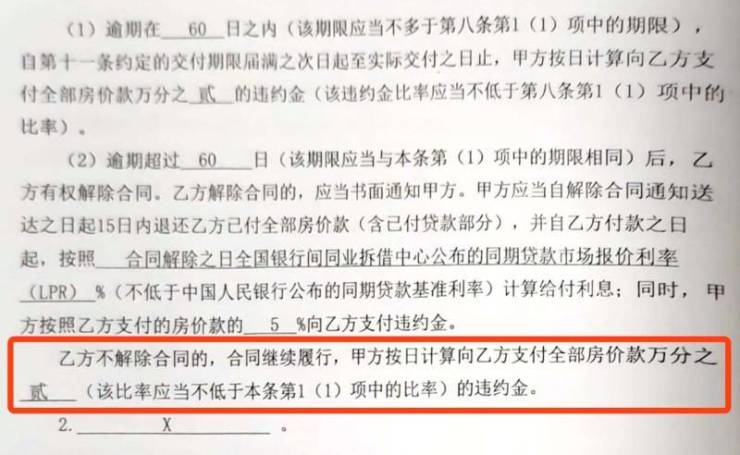 “更让人不可接受的要求又出现了,开发商竟然单方面要求用物业费及车位代金券抵扣延期交房违约金。”正商杏海苑项目赵良(化名)向记者介绍,自己购买的是建筑面积约90平方米的住房,房屋单价2.9万元/平方米,支付总房款为261万元,总房款的万分之二就是522元。开发商逾期交付18天,按照合同,开发商应当向赵良支付9396元延期交房违约金。