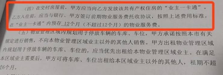 罗镇等多位购房人还告诉记者,很多业主都不能接受开发商的此类要求,因为开发商已经违约,延期交付房子18天。“按照合同约定,如果开发商逾期交付房子,应按日计算向购房人一方支付全部房价款万分之二的违约金。”据罗镇介绍,当初在购房合同中确实有约定,购房人在入住前,应当与银行、开发商签订前期物业服务费托收协议,按照上述费用标准,在“业主一卡通”内预存12个月(不超过12个月)的物业服务费,但在实际预缴物业费时,业主们并未看到“业主一卡通”,而是直接向物业公司转账缴纳物业服务费。