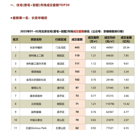 2025年2月再度夺得北京新房普通住宅成交套数、成交面积TOP1!2025年1-2月蝉联北京新房普通住宅成交金额、套数、成交面积,三项TOP1!