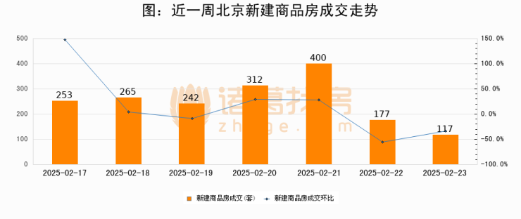 【北京成交日报】02月23日新房成交117套、二手房116套;涨价房源133套