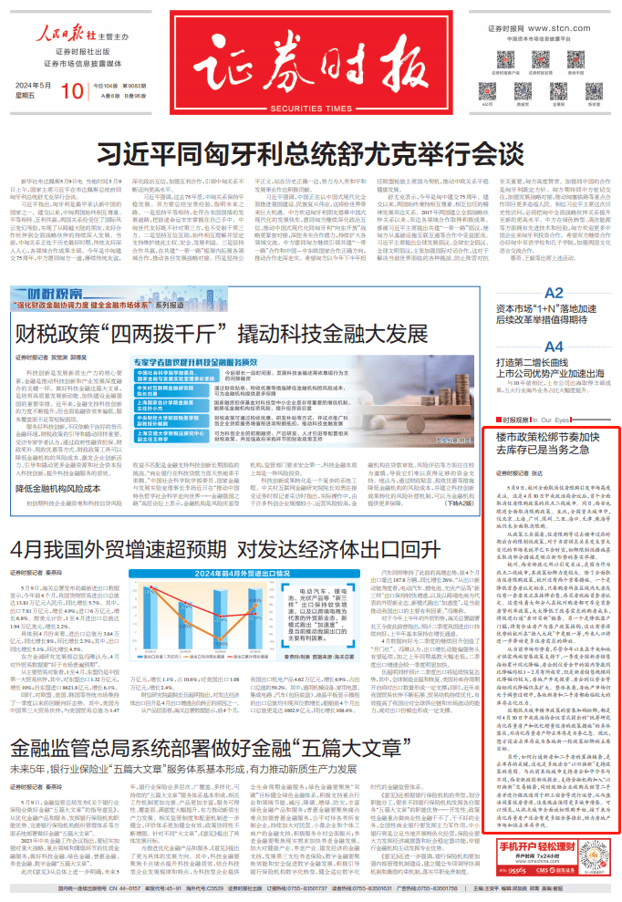 证券时报头版:楼市政策松绑节奏加快,去库存已是当务之急