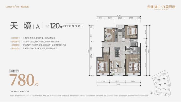 建筑面积约120㎡奢阔三/四居,连续约12米270°玻璃幕墙兼备颜值与采光功能性;约56㎡LDK餐客厨一体化空间无界奢享,让塔尖人士的需求在极具设计性与想象力的空间中得到满足。户型整体得房率高达89%,豁亮的空间、震撼的尺度,堪称名副其实的美学封面作品。