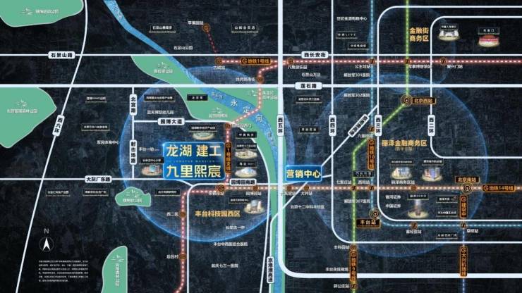 项目北部预计将投入1600亿,打造园博数字经济产业园,区域产业发展前景广阔。项目距14号线和1号线(支线,建设中)交汇点张郭庄站仅约700米,双轨联通北京政务和金融核心区域。项目周边生态资源十分丰富,拥有“一河五湖六公园”宜居环境。