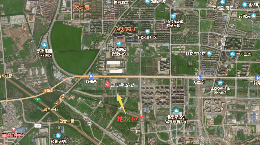 地块东北侧为在售的新房项目--通州万国MOMA约为7w/平,还有珠江阙约7.2w/平。周围二手房均价约为4.5w-6w/平。