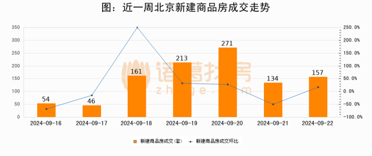 【北京成交日报】09月22日新房成交157套、二手房104套;涨价房源478套