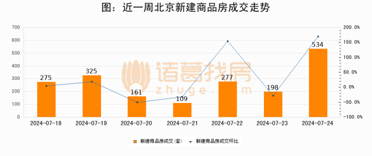 【北京成交日报】07月24日新房成交534套、二手房706套;涨价房源195套