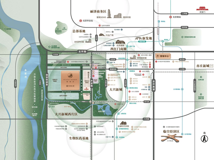 当下, 大兴新城西片区正站在交通变革的全新风口, “3 线 4 站 1 快速路” 的前瞻性交通规划, 强势崛起为京城炙手可热的「30 分钟生活圈」核心枢纽,实现资源的高效流通与共享,为大兴的经济腾飞、文化交融注入源源不断的活力。