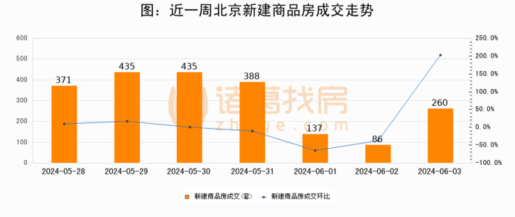 【北京成交日报】06月03日新房成交260套、二手房592套;涨价房源348套