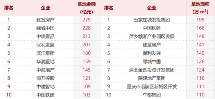 建发房产拿地额位居榜首